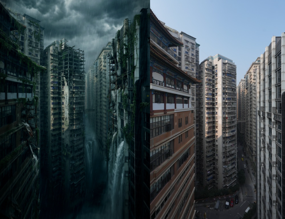 根據官方此次所釋出概念圖,可以清楚看到許多高聳建築被大雨沖刷破敗不堪,但每棟大樓佇立位置和中間連接走廊,就可以發現簡直跟中國「8D魔幻城市」重慶一模一樣,因此許多人都大膽猜測,很可能SHIFT UP團隊所製作的《劍星2》場景,就是取自中國城市背景。
