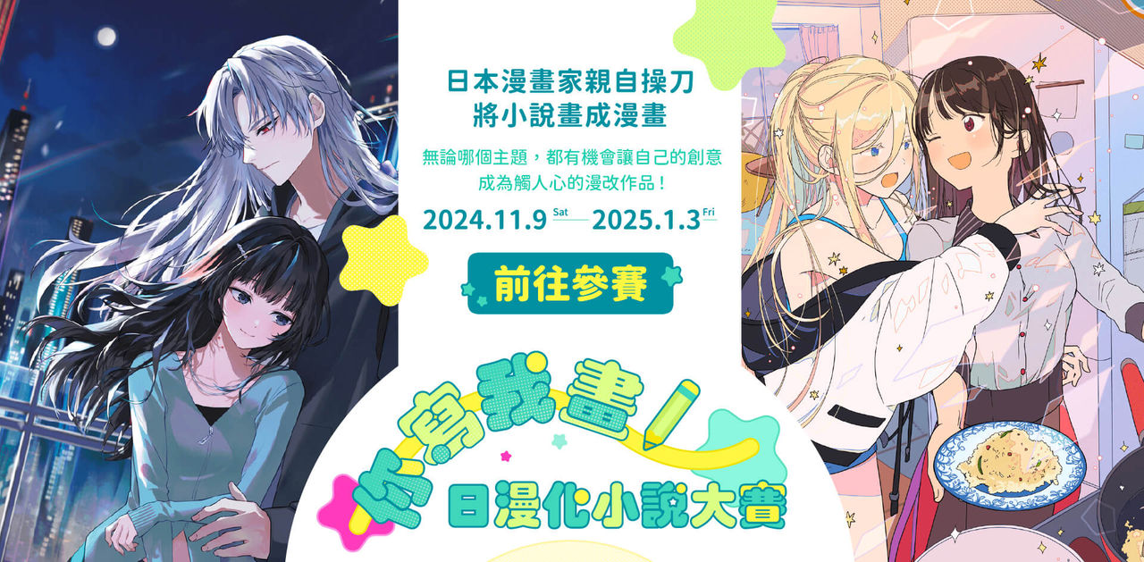 兩位首獎得主之作品,經台日專業評審團嚴謹審議脫穎而出,奇幻組首獎《反派BOSS的專屬溺愛》作者草子信老師巧妙結合轉生、吸血鬼與甜寵元素,使緊張與甜蜜感之間達到了絕妙平衡;百合組首獎《為什麼不能把珍珠放進炒飯裡?》作者今安老師則以簡單的角色關係為基礎,緊湊地編排故事,並以美食增色刺激讀者食慾,兩部首獎作品成功將圖像視覺轉譯為文字藝術,精彩故事將由日方漫畫家改編漫畫,預計2025年夏秋之間於台日兩地同步連載,成為國際關注焦點。