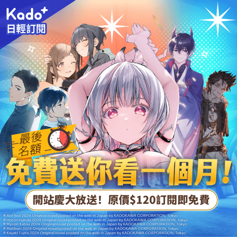 台灣角川旗下小說連載平台KadoKado角角者,即日起推出 「Kado+ 小說訂閱制」方案開幕慶特別活動。小說訂閱制是全台首次嘗試線上服務,可一次解鎖超過 60 部日本正版授權全新連載輕小說,每本每周固定更新,每月都能搶先閱讀尚未上市的實體新作。現正舉辦歡慶開幕限時優惠活動,5/26 中午12:00 前網站下單指定方案,首月訂閱費用官方直接買單,現省120元之外,加碼贈送價值近百元的線上觀書禮。
