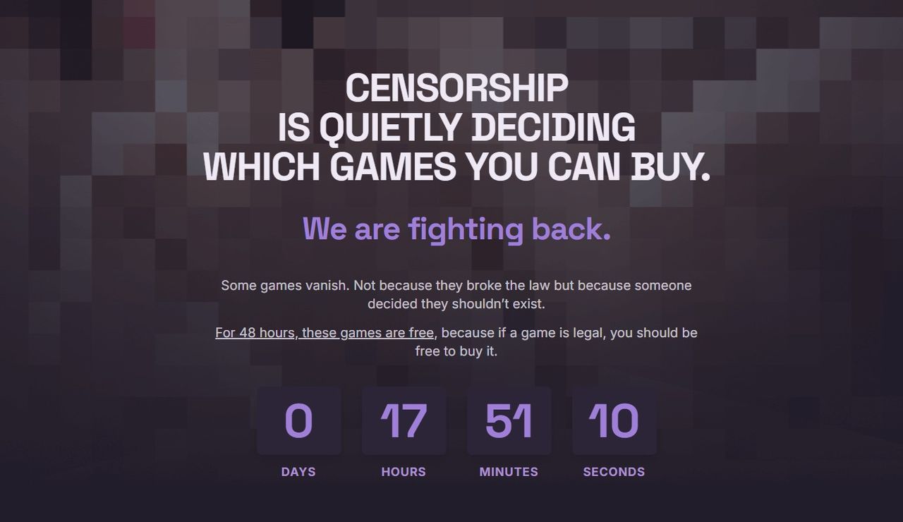 面對近來遊戲下架與數位所有權爭議升溫,老牌數位遊戲平台 GOG(Good Old Games)正式展開名為「FreedomToBuy.games」的倡議行動,主張玩家應有自由持有購買遊戲的權利。為此,平台自即日起限時 48 小時內免費開放領取 13 款遊戲,包含多款近期遭到 Steam 與 itch.io 下架的限制級遊戲。