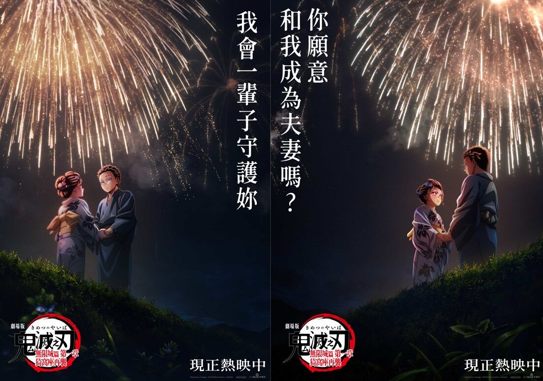 電影發行商木棉花也同步公開全新視覺圖,以「狛治」與「戀雪」在夜空煙火下的約定場景為主題,畫面透過兩人交錯的視角呈現並搭配獨白文字,細膩傳達兩人間真摯情感,營造出細膩而動人的氛圍也再次呼應劇中重要情節,讓觀眾重溫這段浪漫愛情故事,伴隨著官方影片所配上溫柔感人又震撼的樂曲,網友們紛紛喊到,「我真的哭死」、「拜託出這張特典」、「再去 20 刷」、「這一道別就是好幾百年」。