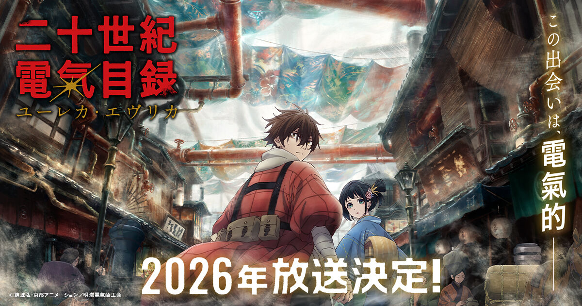 京都動畫製作的新電視動畫《二十世紀電氣目錄》確定將於 2026 年播出,同步公開了主視覺、前導 PV 與聲優陣容。主角坂本喜八由「內田雄馬」配音,女主角百川稻子則由「雨宮天」飾演。