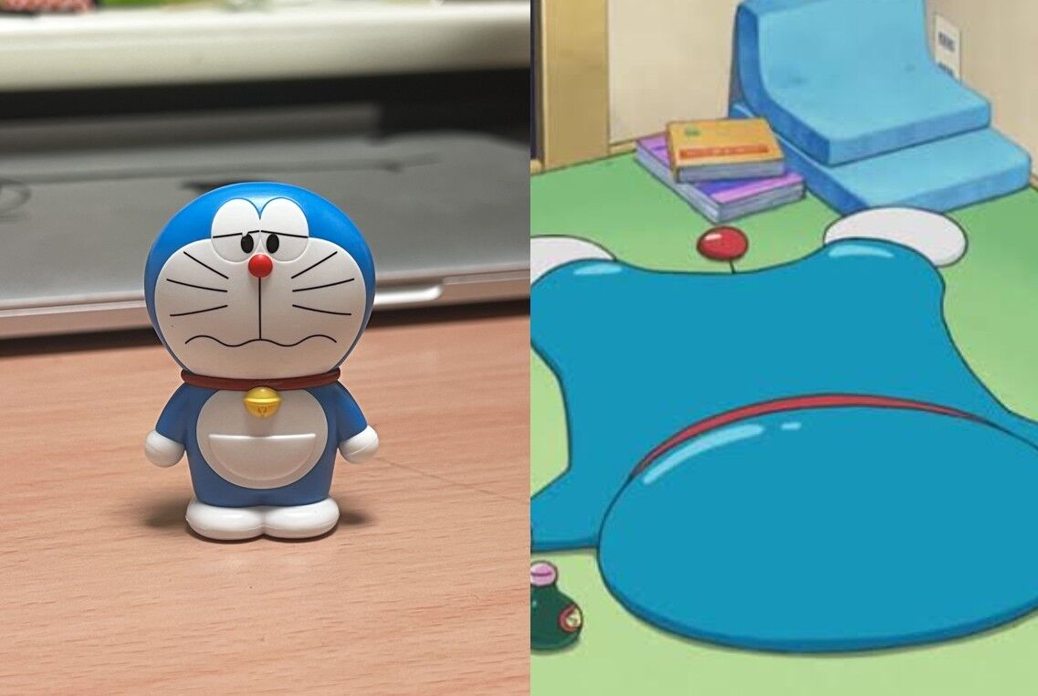 推特網友きさらぎ(@zer0_ykisaragi)先前在社群上分享自己在 Seria 所買「哆啦A夢」模型,他 PO 了兩張照片,第一張正面角度看起來很正常,經典哆啦A夢造型帶著「真拿你沒辦法」的表情,不過第二張從側面角度來看...本來應該要是圓滾滾的哆啦A夢被壓扁啦,彷彿紙片般的有趣造型瞬間在推特上爆紅,目前超過 400 萬觀看以及 12 萬人點讚,きさらぎ 後續還曬出超多款不同表情的「扁平哆啦A夢」模型。
