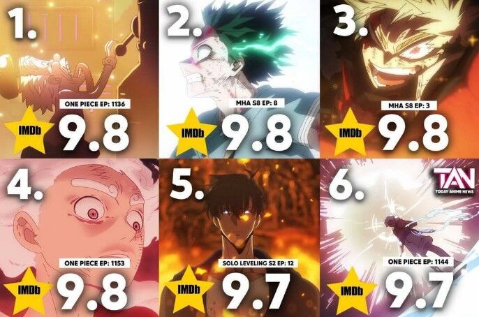 2025 年動畫圈競爭激烈,各大作品話題不斷,日前網友們所統計出 IMDb 高分動畫單集榜單也引發粉絲熱議。其中,《航海王》與《我的英雄學院》強勢霸榜,前幾名評分幾乎清一色衝破 9.8 分,讓網友忍不住直呼「每一集都是神回,根本逼人重刷!」