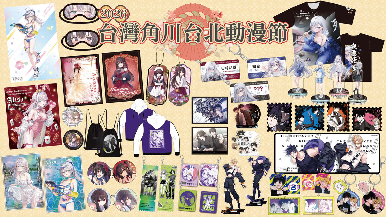 「2026台北國際動漫節」將於2/5起在南港展覽館一館盛大舉辦,台灣角川今日公開近百款的動漫節首賣及會場限定的超人氣動漫周邊精品──青春戀愛喜劇《不時輕聲地以俄語遮羞的鄰座艾莉同學》原作系列推出包含複製原畫、大掛軸等近20款豪華新品;王道後宮戀愛的巔峰之作《DATE A LIVE 約會大作戰》;一月新番熱門話題、為了生存美少女們挺身而出的殘酷物語《靠死亡遊戲混飯吃。》