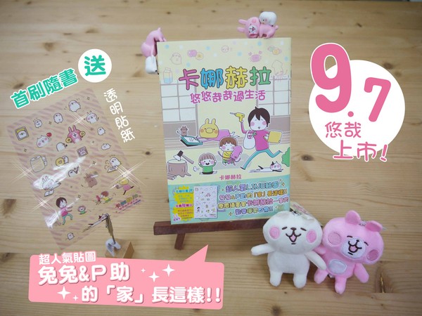 風靡網路世界的超可愛貼圖「P助與兔兔」,各種逗趣又爆笑的表情貼圖讓人一用再用,而背後的作者「卡娜赫拉」在9月7日出書囉,推出《卡娜赫拉悠悠哉哉過生活(全)》圖文日記,中文版還獨家附贈連貼圖也買不到的「兔兔、P助、卡娜赫拉一家的透明貼紙」,書腰還可以抽價值千元的卡娜赫拉周邊商品,喜歡卡娜赫拉系列的粉絲千萬不要錯過囉!